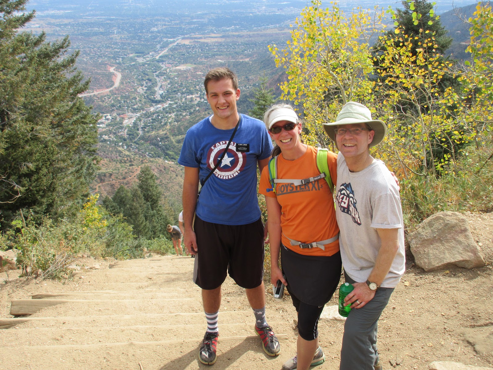 TODAY, We were picked up by Jeff (Gunga) and Amy Wolin, who live in Woodland Park and drove us to hike The Incline. On our way over, we witnessed a car crash that was super close to us where a man ran a red light and wasn't quick enough. Everyone was alright, but it was something that doesn't happen very often. To give you an idea of what The Incline is, here are some facts about it. Length: 1 mile, but climbs 2,000 vertical feet. Duration: Under 30 minutes to over an hour or more depending on your fitness level and pace. Trail Difficulty: Difficult. The fastest time anyone has ever done it was in 17 minutes and like 45 seconds. I was the first of the group to summit at 39 minutes and 20 seconds. It was super sunny and hot, which made me sweat real bad. The view at the top however, was incredible. It was super fun to hang out with the Wolins and The Incline was super cool. We didn't go back down the way we came up, but took a switchback trail all the way back down. It was a super fun hike and was really pretty:)